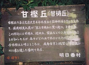 現在は万葉展望台があり、丘上に建てば、明日香地域が一望できる。