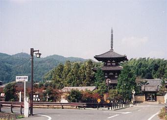 旧地に昔ながらの工法で建てられた塔は、斑鳩の里の風景にしっくりとなじみ、斑鳩三塔の姿を取り戻している。