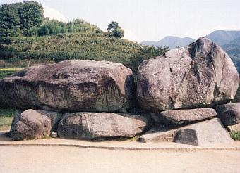 もとは土に覆われた上円下方墳だったらしいが、現在のように石がむき出した状態になった理由は謎。