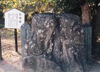 太子堂の横手にある二面石は、人間の善と悪の2つの心を彫ったものという。