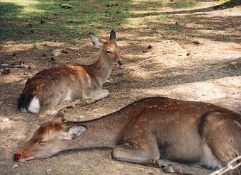 | 東大寺の鹿 途中で鹿に遭遇しました。目を閉じて眠っています。 そーっと近付いて撮影成功。 |